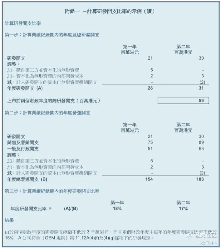 研发开支比率 = 研发费用 ÷ 总营运开支,是港交所筛选研发型企业的核心量化指标,不同板块、不同企业类型要求差异极大,核心规则如下: