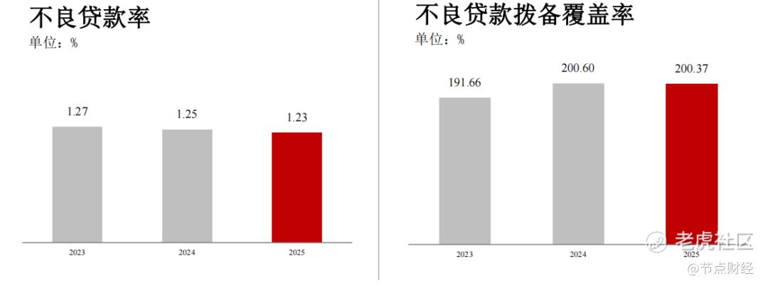 截至2025年末,中国银行不良贷款率为1.23%,较上年末下降0.02个百分点;拨备覆盖率200.37%,资本充足率18.85%,基本保持平稳。