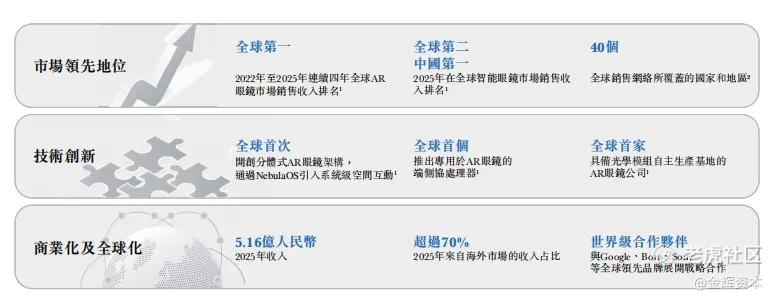 全球化布局与商业化能力,是 XREAL 巩固市场地位的另一大核心优势。自成立以来,XREAL 便以全球市场为舞台,截至 2025 年底,其销售网络已覆盖 40 个国家和地区,在北美、日本、韩国均设立了本地销售与运营团队,2025 年超过 70% 的收入来自海外市场,美国、日本、欧洲成为核心海外阵地。在合作生态上,XREAL 与 Google、Bose、Sony 等全球领先品牌展开深度战略合作,同时依托立讯精密等头部企业构建稳定的供应链体系,实现了技术、市场与供应链的全球协同。2025 年,公司实现营业收入 5.16 亿元,同比增长 30.8%,展现出强劲的增长势头。