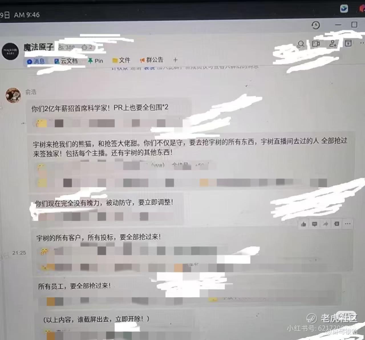 俞浩让团队抢宇树的所有客户、所有投标、所有员工,“要全部抢过来”!俞浩称团队现在“完全没有魄力,被动防守”,要求立即调整。