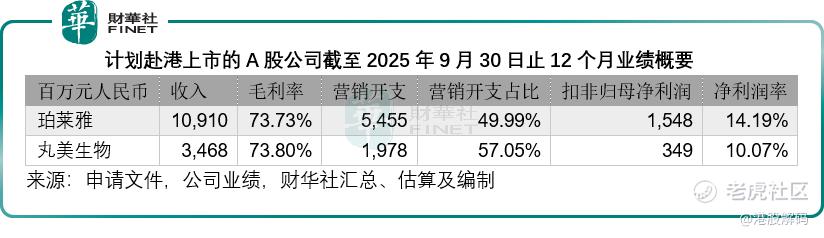 更令人担忧的是盈利能力。自然堂2025年的毛利率为70.65%,在可比公司中处于垫底位置——上美股份为76.43%,巨子生物为80.34%,林清轩为82.01%,毛戈平更是高达84.22%。而计划赴港的两家A股公司(截至2025年9月末止12个月业绩,下同)珀莱雅和丸美生物,毛利率也分别达到73.73%和73.80%,同样高于自然堂。