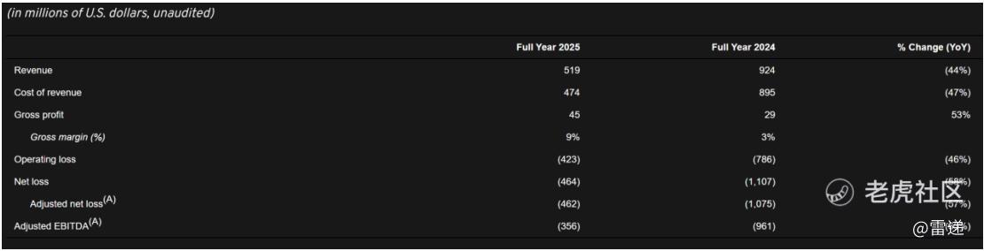 路特斯科技2025年第四季度运营亏损为6600万美元,较上年同期的运营亏损1.89亿美元收窄65%;净亏损和经调整净亏损均为8600万美元,较上年同期的4.4亿美元均收窄81%;