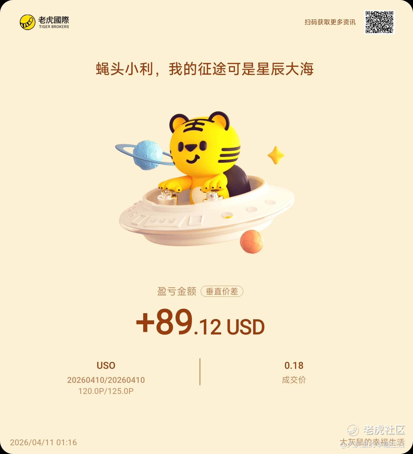 $美国原油ETF 垂直价差 260410 PUT 125.0/PUT 120.0$ 四月第二周,获利平仓