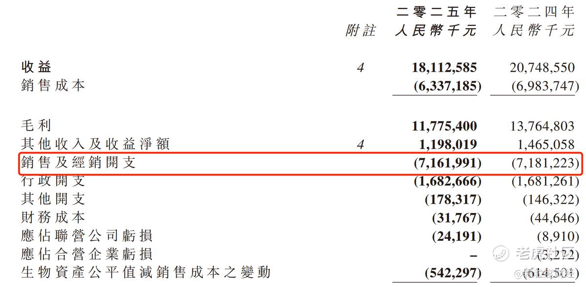 其2025年营收下滑了12.7%,销售及经销开支却与上年几乎持平,显示出费用拉动增长的效果越来越差了。