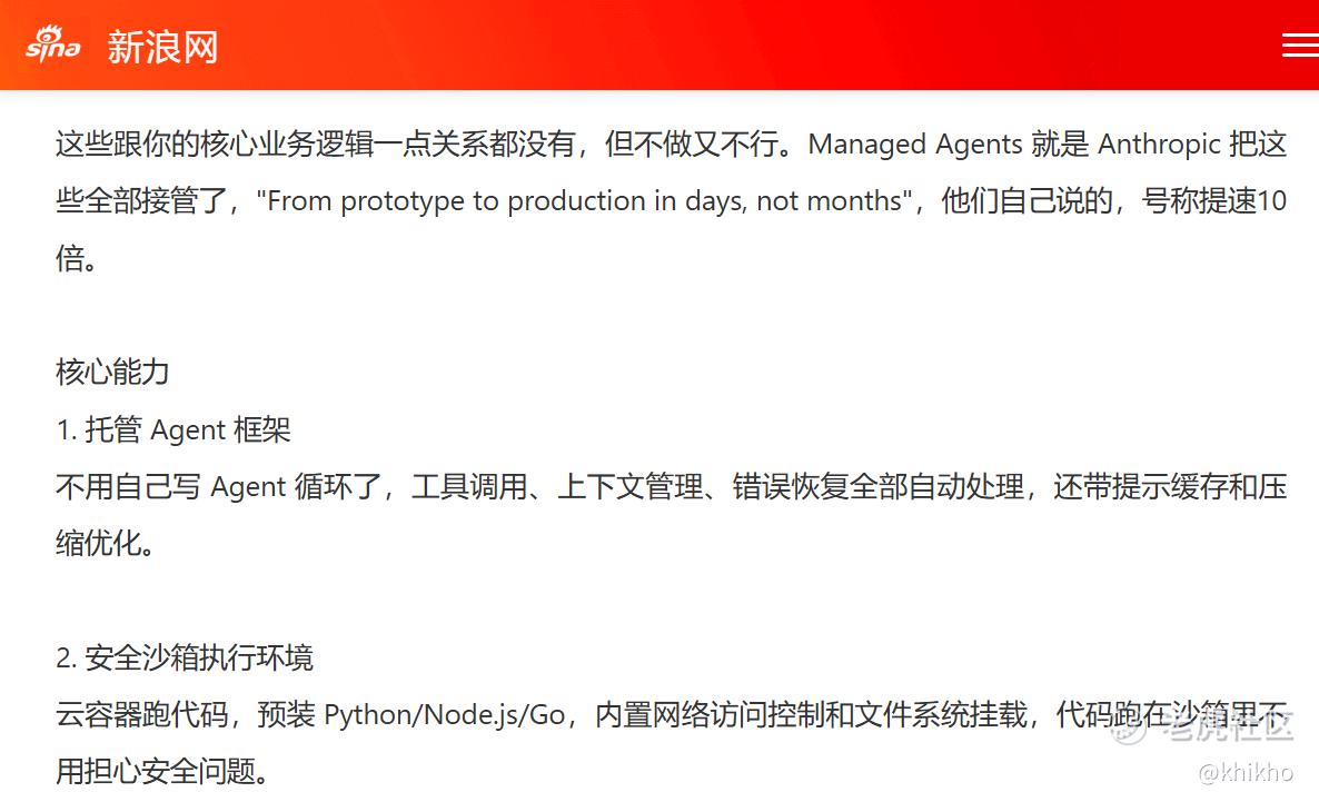 过去市场相信AI会让SaaS公司如 $ServiceNow(NOW)$ 和 $赛富时(CRM)$ 如虎添翼,通过 AI Copilot 卖更高的客单价。但 Anthropic Claude Managed Agents 的出现打破了这种幻想,连逻辑都转变了,如果AI Agent智能体可以直接调用底层 API 完成任务,用户为什么还需要臃肿的 SaaS UI界面?
