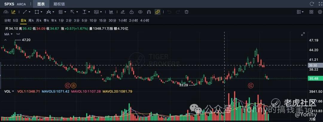 最近我的各种小账户就是一直在卖三倍做空大盘指数(SPXS)的中期虚值CALL(吃杠杆磨损+弱看多大盘)—— 只要到期时大盘没有出现超级暴跌的情况,权利金就是你的。