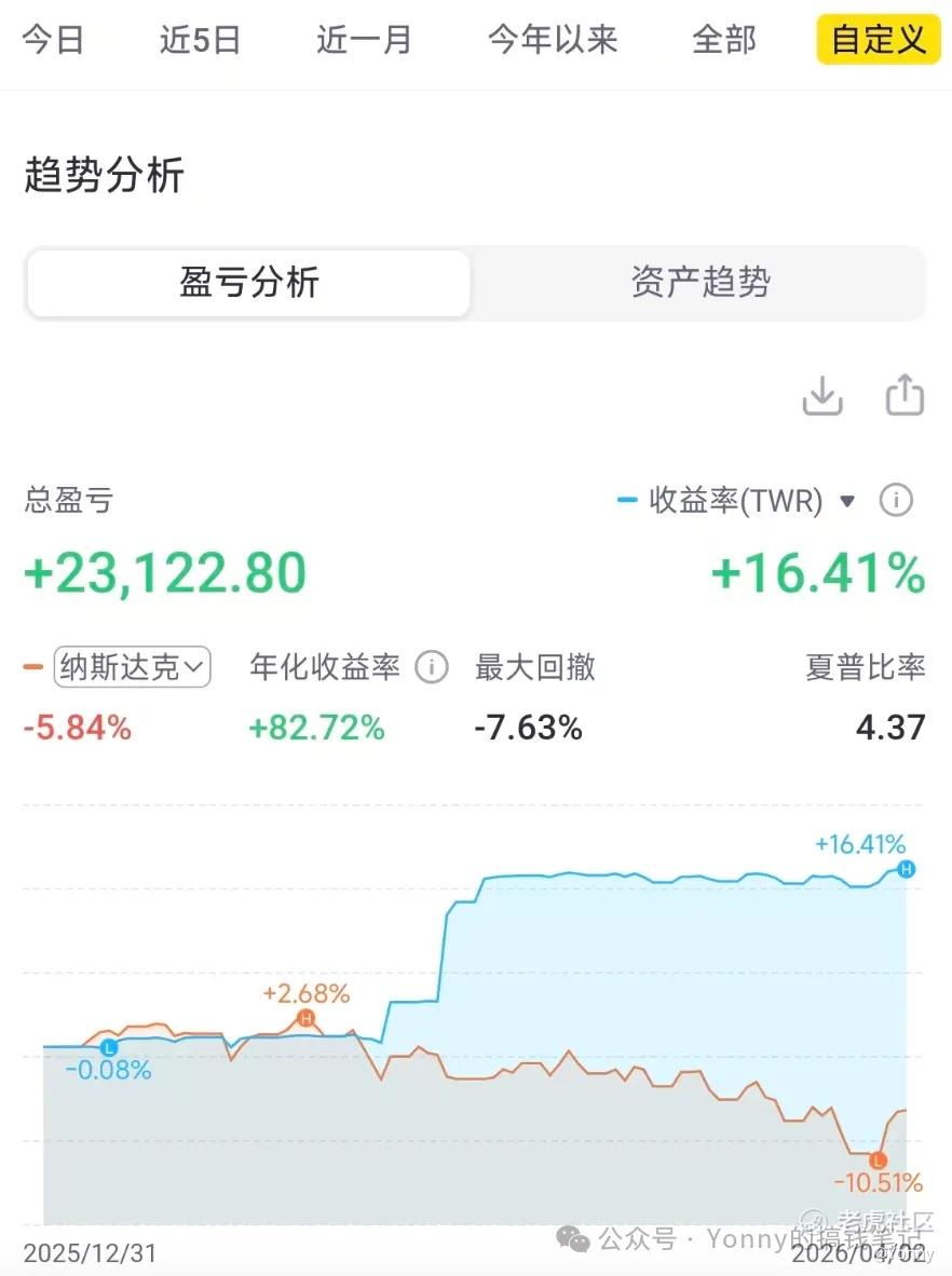 今年我自己的炒股账户确实还在水下,没跑赢纳指。但如果把所有资金维度加在一起——炒股 + 卖权 + 打新——整体是水上的,而且收益还行。