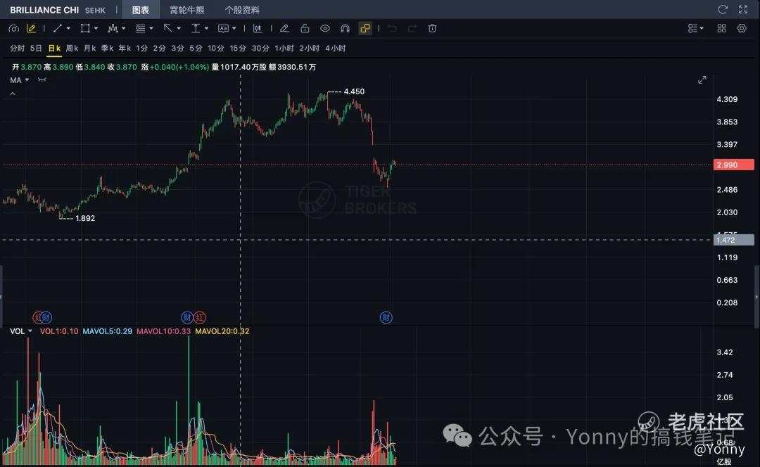 今天再聊一个类似逻辑的标的:华晨中国(1114.HK)。