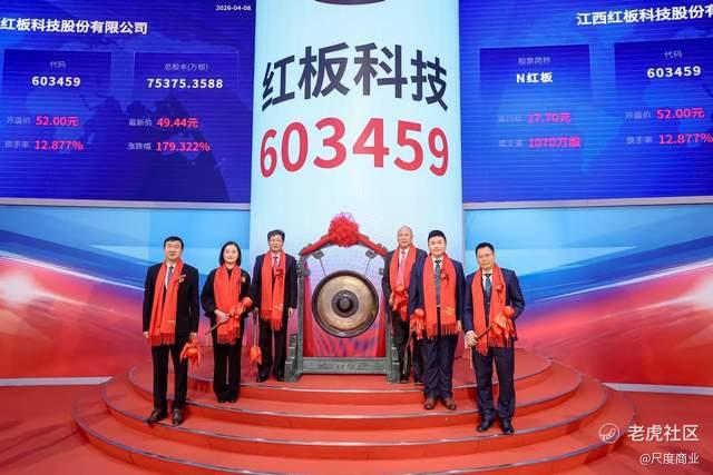 2026年4月8日,江西红板科技股份有限公司(股票简称:红板科技;股票代码:603459)在上海证券交易所主板成功上市。本次公司发行价格为17.70元/股,上市首日开盘价为52.00元,较发行价上涨193.79%。以开盘价计算,公司市值达370.85亿元。