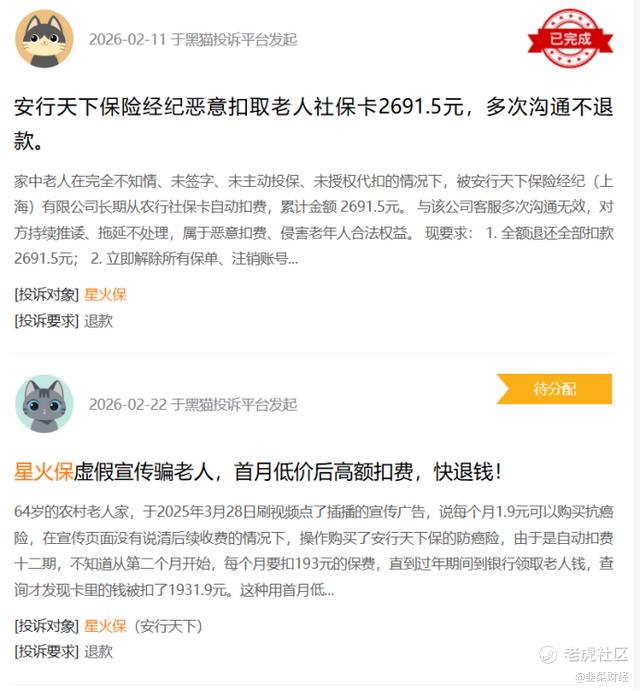 而到子女发现时,往往已经过了几个月甚至几年的时间,有的子女是在为父母查阅银行流水的时候发现每个月都有一笔“星火保”、“安行天下经纪保险”的扣款,金额小的也有几千块,大的则有上万块。