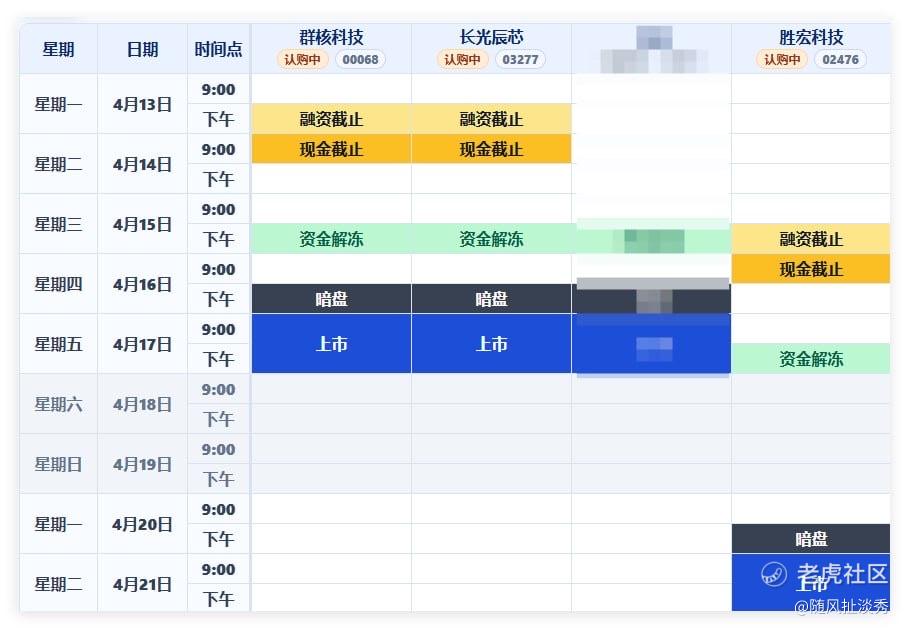 打新日历更新供参考,胜宏应该对某桥之类的融资结束时间比较早的券商有影响,会跟群核、长光的解冻时间冲突。