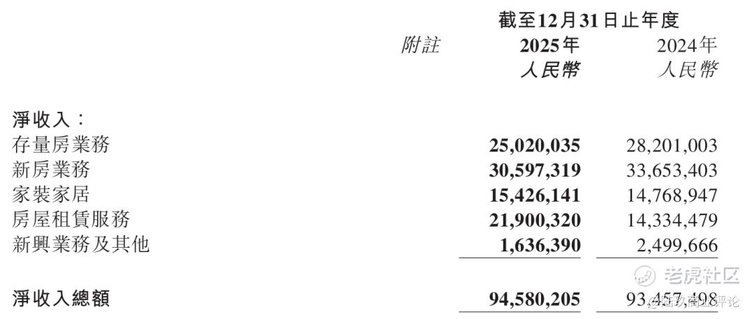 说回到贝壳的业务,去年,贝壳的核心交易业务压力不小,存量房业务净收入为250亿元,同比下降11.3%;新房业务净收入为306亿元,同比下降9.1%。二者贡献利润的降幅更为明显,分别同比下降19.29%和8.4%,所以公司整体毛利率从2024年的24.6%下滑至21.4%。