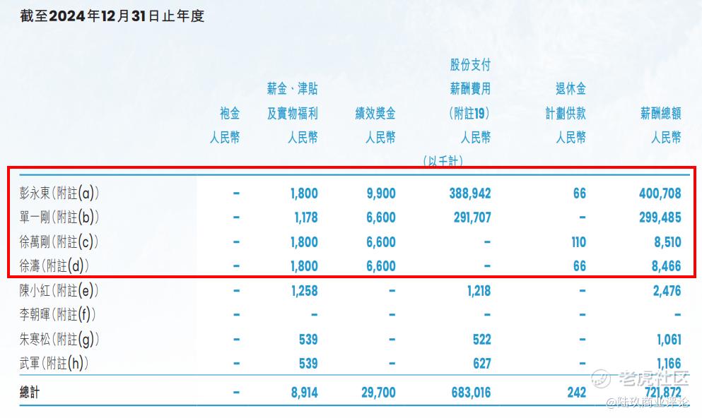 2024年,彭永东实际现金薪酬不足200万元,绩效奖金990万元,对于一家大型企业的一把手而言,这个数字并不算高。