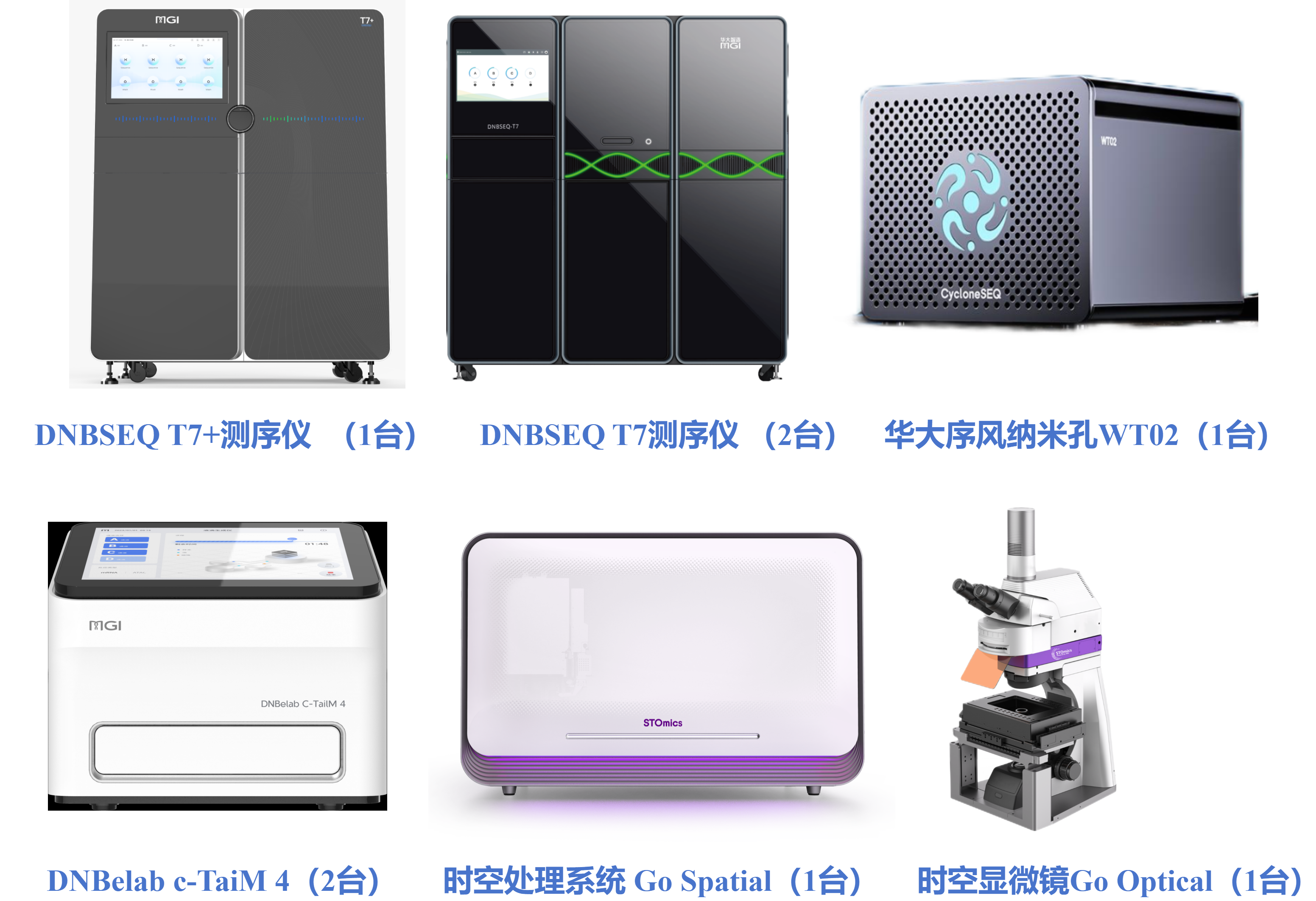 超高通量测序仪:DNBSEQ-T7+测序仪(1台)、DNBSEQ-T7测序仪(2台),24小时可产出超40Tb数据;