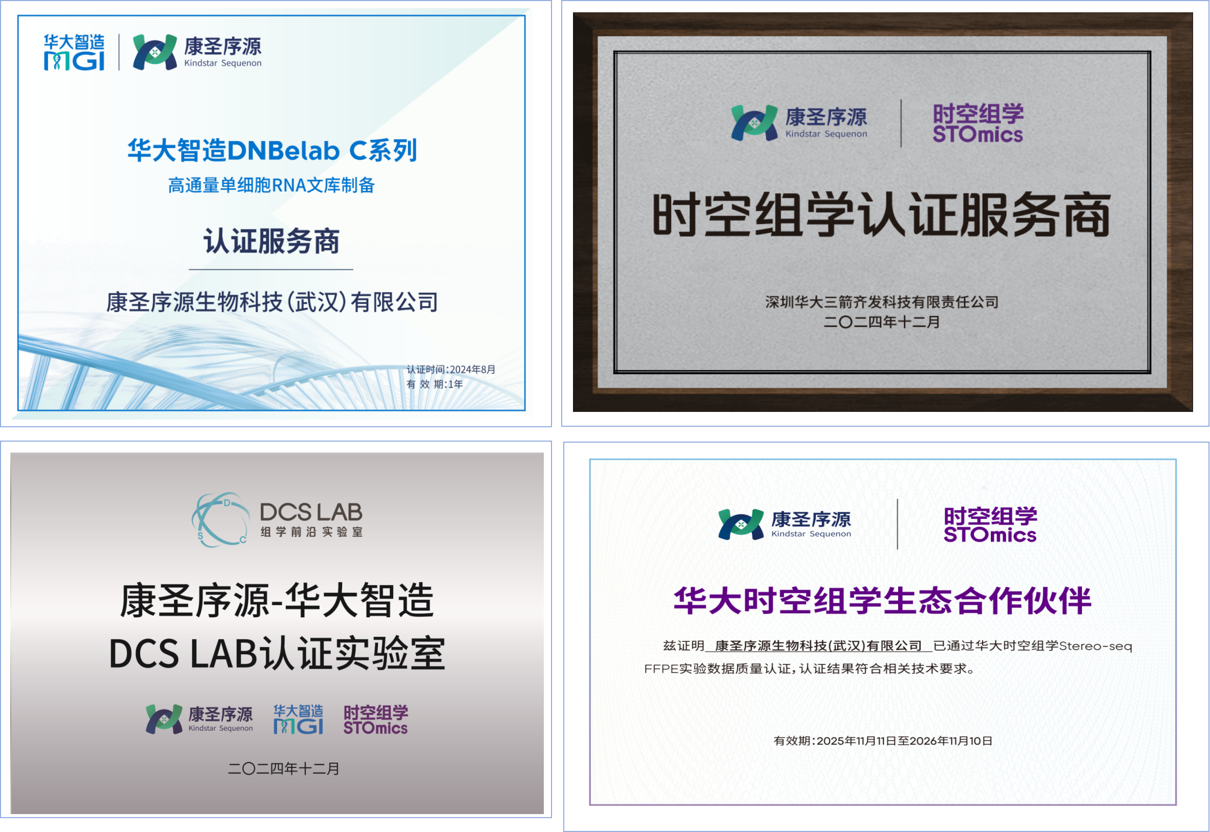 凭借卓越的数据质量、代表性的科研成果与高质量的案例输出,康圣序源连续通过华大智造官方全面认证。这些认证不仅是对技术流程标准化、数据稳定性的最高肯定,更意味着康圣序源已跻身华大生态核心伙伴行列,能够为客户提供最前沿、最可靠的基因多组学解决方案。