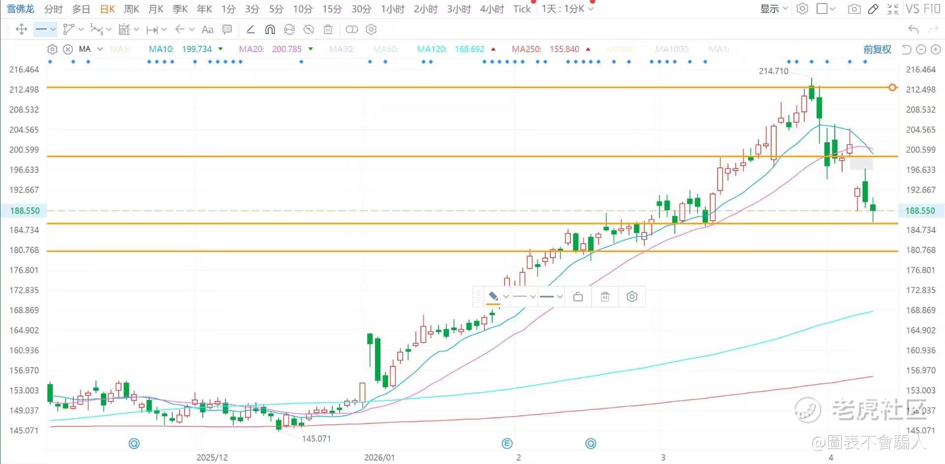 雪佛龙(CVX):收跌0.95%,盘前涨1.98%,能源巨头,与 XOM 联动,波动原因也是受到国际局势影响,支撑参考180/185,阻力参考199/212