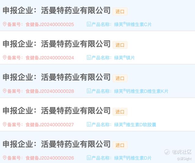 源Sight在国家市场监督管理总局特殊食品信息查询平台了解到,Homart药业共有5款产品通过进口保健食品备案,也就是市场通称的“蓝帽子”,备案品牌为“绿芙”,这是Homart推出的自有品牌,而包括汤普森在内的其余收购品牌目前暂未取得相关资质,在中国市场只能以膳食补充剂的形式进行销售和宣传。