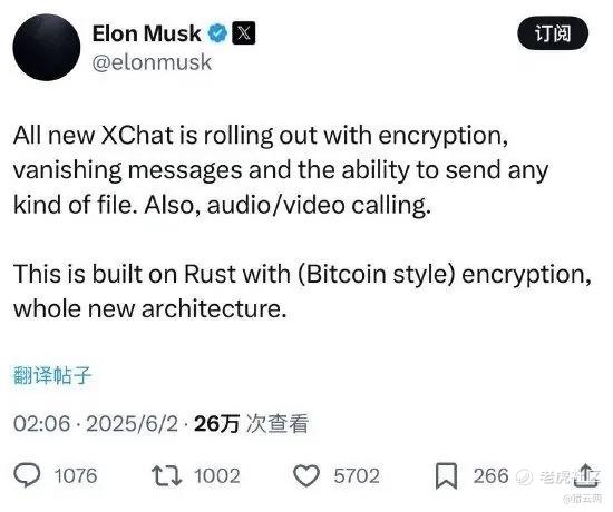 资料显示,2025年5月,内测消息就开始在技术社区流传:一个名为XChat的独立应用正在开发中,有人在TestFlight上收到了邀请。同年6月,马斯克首次发布相关推文。随后,XChat官方账号也在X上发出了第一条帖子。