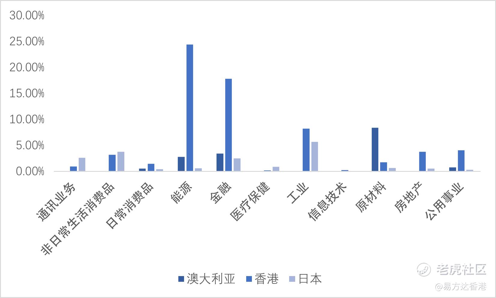与此同时,MSCI亚太精选高股息指数并不仅仅局限於单一市场,而是将亚太多个成熟市场中具有代表性的HALO资产纳入同一组合。从行业分布来看,不同市场在重资产领域各具优势,也形成了较为清晰的结构分工。