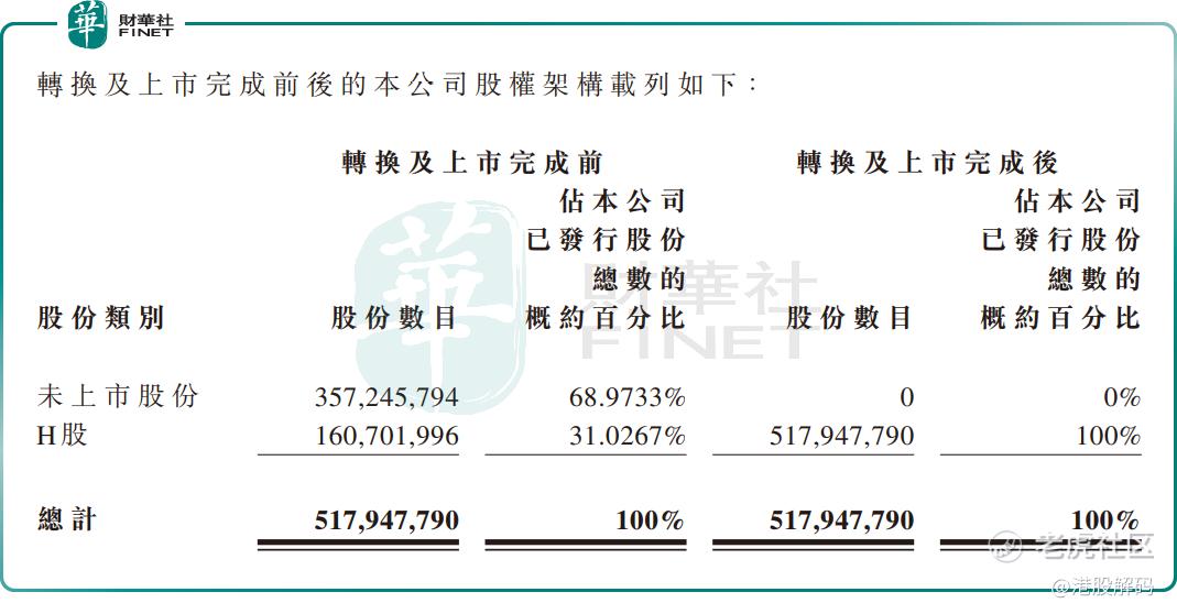 转换完成后,公司未上市股份将由3.57亿股(占比68.97%)降至零,H股将由1.61亿股(占比31.03%)增至5.18亿股(占比100%),实现全流通。