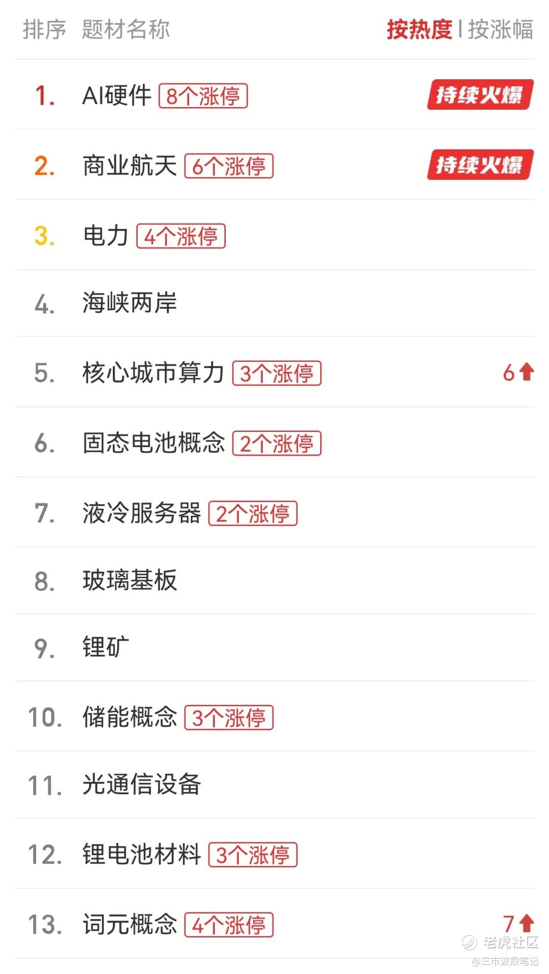 这点我自己还没有想明白,因为我自己的交易系统,我更喜欢的位置是中高拥挤度的板块,不是最高的那个。以上图为例,在现有的交易体系中,我只会重仓第二商业航天和第三电力,第一个AI硬件则是边打边退。