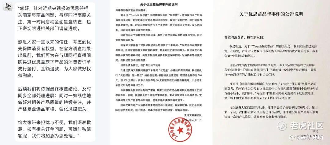 *与辉同行、夏诗文、明道直播团队的相关说明