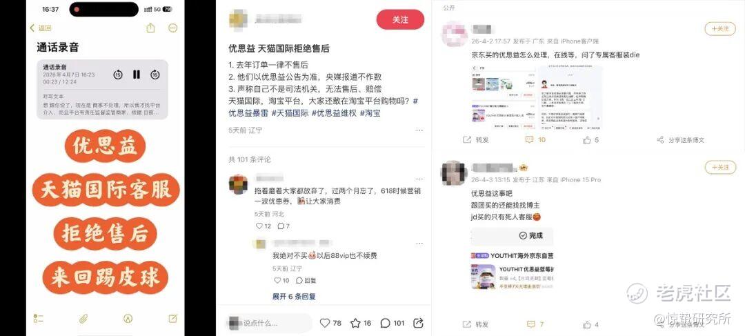 *消费者在社交媒体平台吐槽平台拒绝售后的帖子