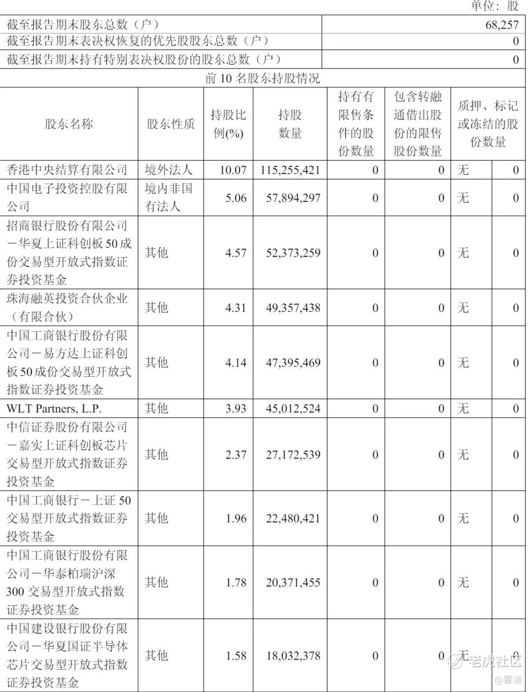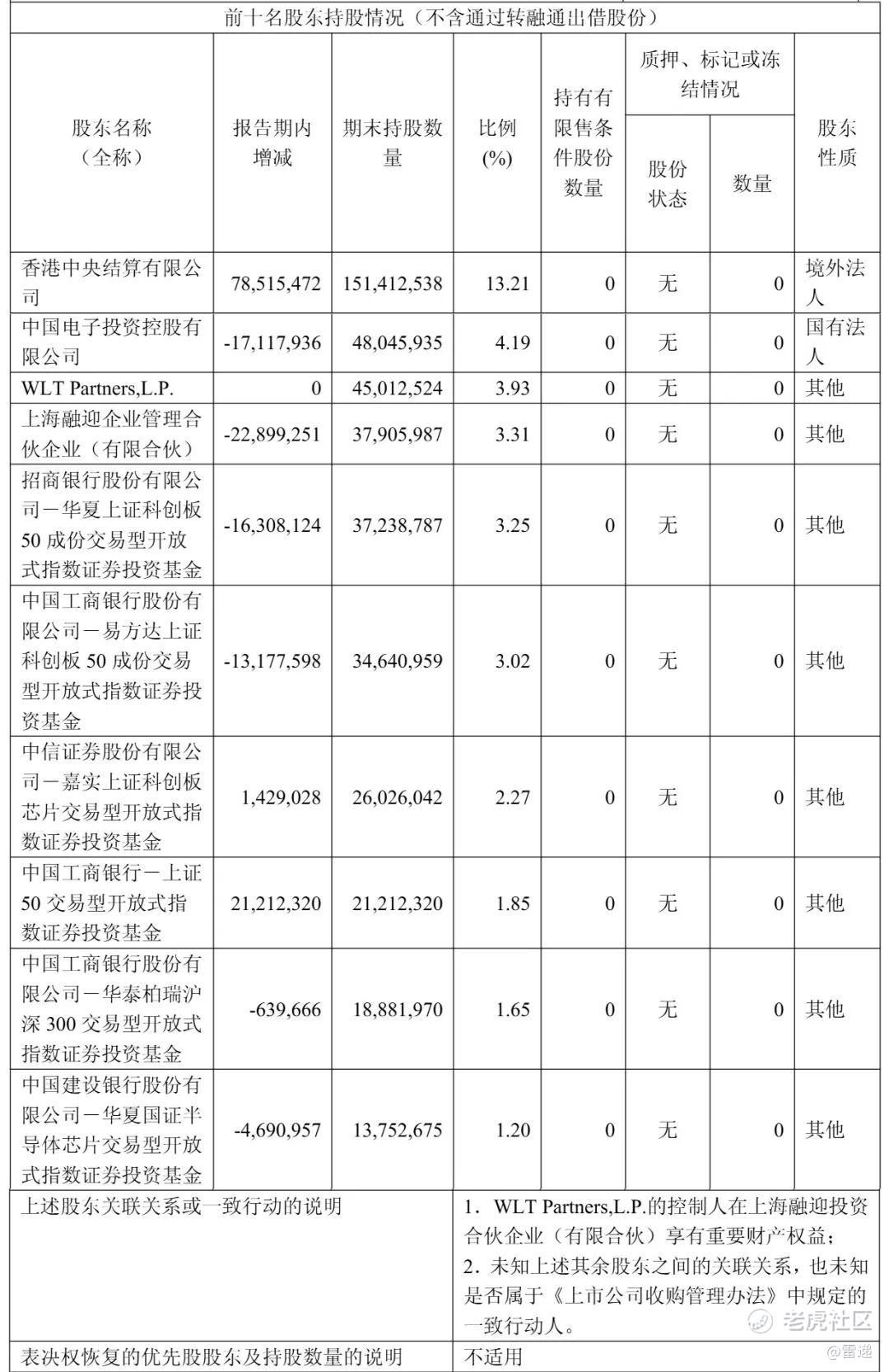 截至2025年12月31日,香港中央结算有限公司持股为3.21%,中国电子投资控股有限公司持股为4.19%,WLT Partners持股为3.93%,上海融迎企业管理合伙企业(有限合伙)持股为3.31%;