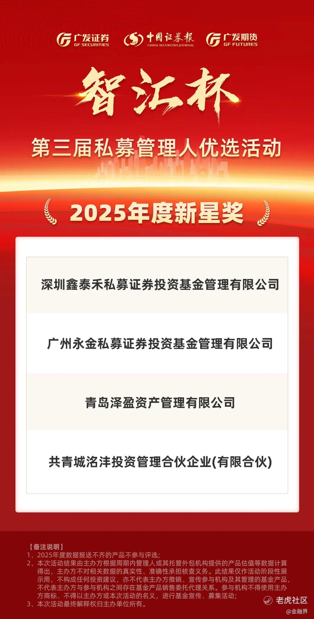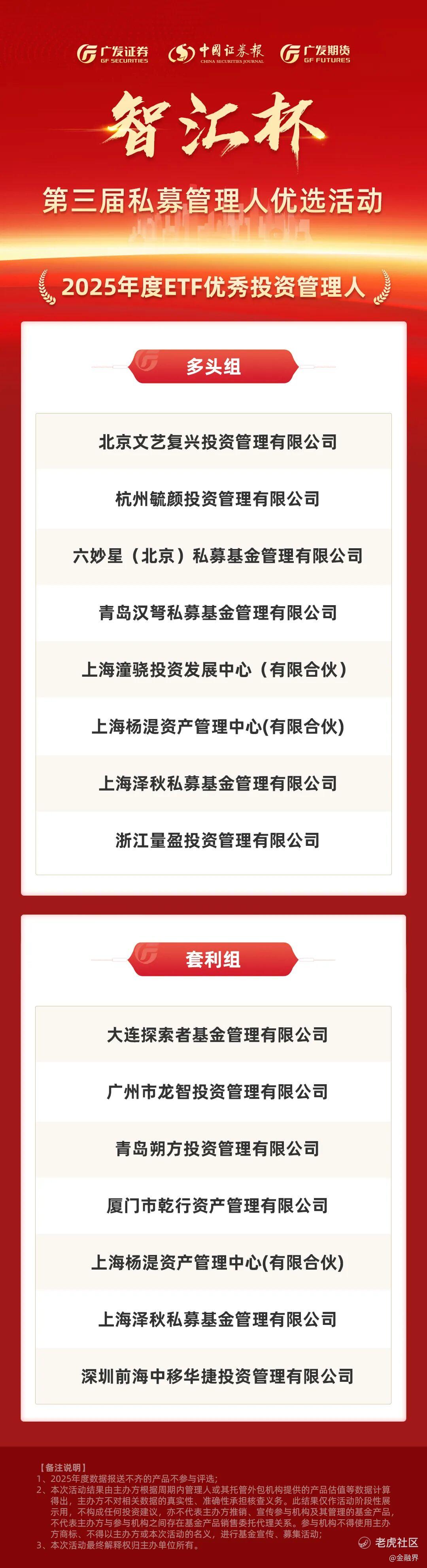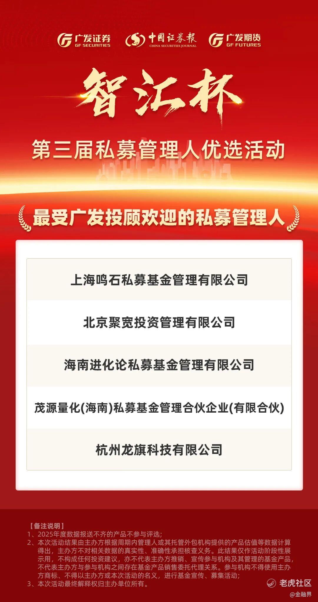 在此市场背景下,由广发证券携手中国证券报共同发起的第三届“智汇杯”2025年私募管理人优选活动于近日正式揭晓最终名单。本届活动在承继过往两届严谨评选体系的基础上,进一步扩大了评选范围,吸引了业内诸多绩优私募机构同台竞技。评选维度覆盖“年度优秀管理人”“年度ETF优秀投资管理人”“年度新星奖”以及“最受广发投顾欢迎的私募管理人”等多个细分赛道,最终一批兼具业绩韧性与策略辨识度的管理人从中崭露头角。