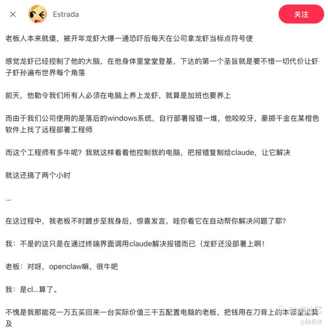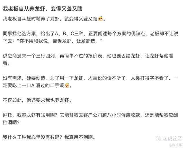在这一刻,员工完成了双重糊弄:既用了AI工具交差,又向老板证明了自己的判断力高于龙虾。