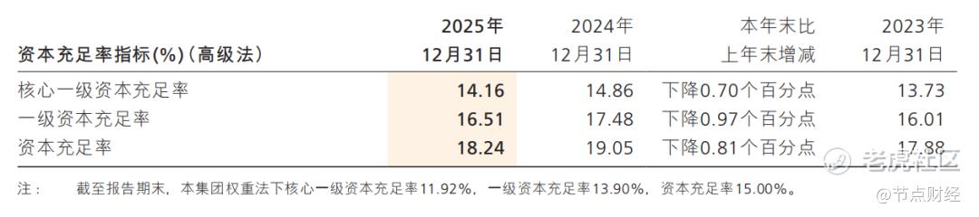 按一级资本排名,招商银行在全球1000家大银行中排名第8位,较2024年前进2位;期末总资本充足率18.24%,保持行业头部水平。