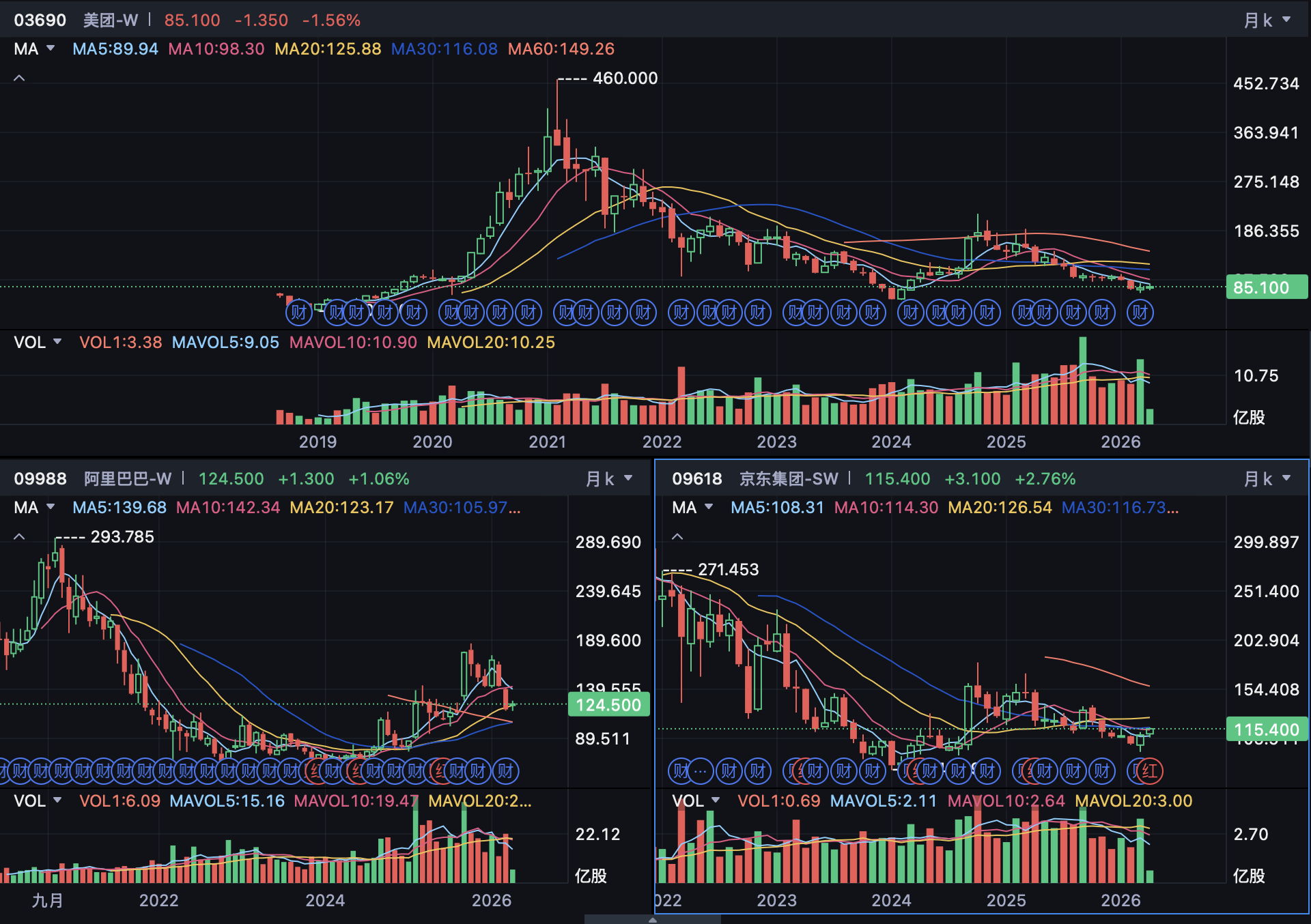 港股方面,三股2025年曾因监管信号短暂反弹,但2026年4月哈啰事件再添变数,整体科技板块需持续消化政策预期。