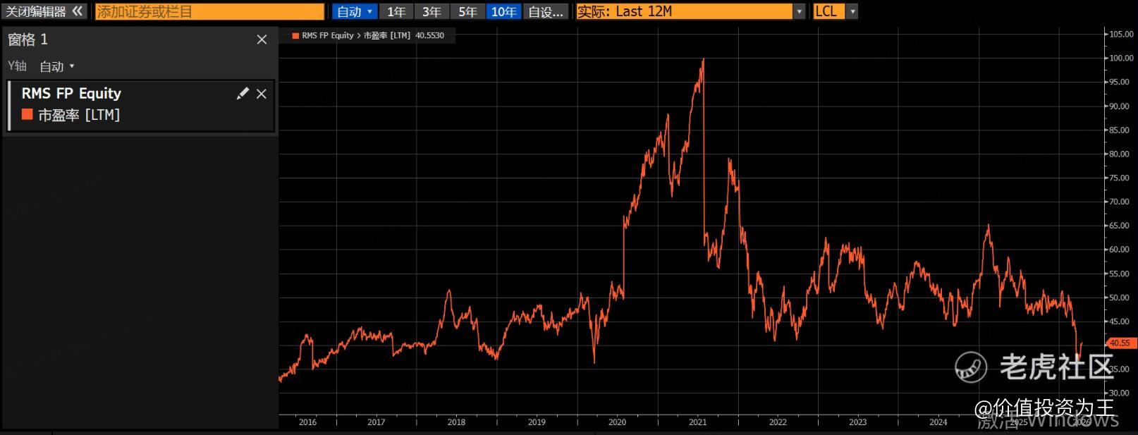 爱马仕今天将发布一季报,如果不考虑美元贬值影响,分析师预期爱马仕内生营收增速在7%左右。 绝对数值虽然不高,但爱马仕的优势胜在稳定性,而非爆发力。 从市盈率估值上看,爱马仕是市盈率一度接近36倍,创近年来最低估值,比我2022年抄底的时候还要便宜! $爱马仕(HESAY)$