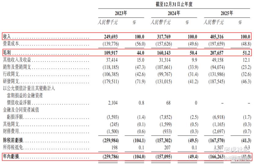 2023年、2024年及2025年(报告期),公司分别实现收入2.5亿元、3.18亿元、4.05亿元,毛利率分别为44.0%、50.4%及51.2%。