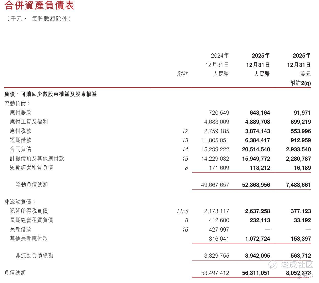 截至2025年12月31日,网易负债总额为563亿(约80.5亿美元),其中,流动负债总额为523.68亿(约74.89亿美元),非流动负债为39.42亿(约5.64亿美元)。