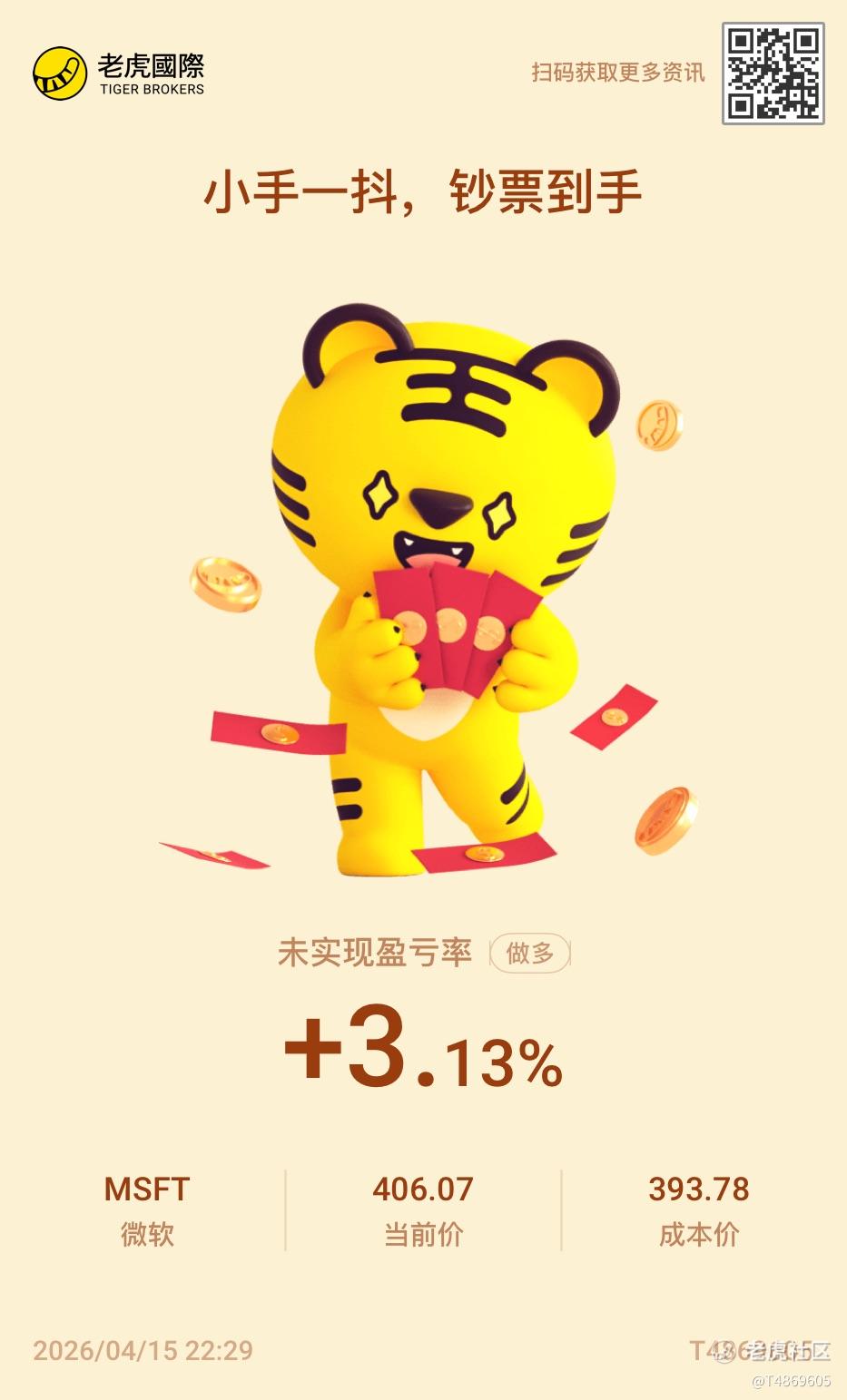{"i18n":{"language":"zh_CN"},"data":{"magic":2,"id":553896937367256,"tweetId":"553896937367256","gmtCreate":1776263381297,"gmtModify":1776263383871,"author":{"id":3479565664344634,"idStr":"3479565664344634","authorId":3479565664344634,"authorIdStr":"3479565664344634","name":"T4869605","avatar":"https://static.tigerbbs.com/c960dd87d5f5e25178401b9b48ad29cc","vip":1,"userType":1,"introduction":"","boolIsFan":false,"boolIsHead":false,"crmLevel":5,"crmLevelSwitch":1,"currentWearingBadge":{"badgeId":"228c86a078844d74991fff2b7ab2428d-1","templateUuid":"228c86a078844d74991fff2b7ab2428d","name":"投资经理虎","description":"证券账户累计交易金额达到10万美元","bigImgUrl":"https://static.tigerbbs.com/c8dfc27c1ee0e25db1c93e9d0b641101","smallImgUrl":"https://static.tigerbbs.com/f43908c142f8a33c78f5bdf0e2897488","grayImgUrl":"https://static.tigerbbs.com/82165ff19cb8a786e8919f92acee5213","redirectLinkEnabled":0,"hasAllocated":1,"isWearing":1,"stampPosition":0,"hasStamp":0,"allocationCount":1,"allocatedDate":"2025.04.26","exceedPercentage":"60.93%","individualDisplayEnabled":0},"individualDisplayBadges":[],"fanSize":0,"starInvestorFlag":false},"themes":[{"themeId":"5bfad02ab61749c8bfe6573ac7bbe8a3","categoryId":"b76d3c59fc044df59779c041b25852a6","name":"晒晒更赚钱","type":0,"rnLink":"https://laohu8.com/RN?name=RNTheme&page=/theme/detail&rndata={\"themeId\":5bfad02ab61749c8bfe6573ac7bbe8a3}&rnconfig={\"headerBarHidden\": true}","description":"晒晒你的盈亏单,秀秀虎友们的实力!","image":"https://static.tigerbbs.com/347184265ee0be8c363259951f8033cb"}],"images":[{"img":"https://static.tigerbbs.com/056ed9c2556f1dbfe716dc24f1f7ee5d","width":"933","height":"1543"}],"coverImages":[{"img":"https://static.tigerbbs.com/056ed9c2556f1dbfe716dc24f1f7ee5d","width":"933","height":"1543"}],"title":"","html":"<html><head></head><body><a href=\"https://laohu8.com/S/MSFT\">$微软(MSFT)$ </a> <img src=\"https://static.tigerbbs.com/056ed9c2556f1dbfe716dc24f1f7ee5d\" tg-width=\"933\" tg-height=\"1543\"></body></html>","htmlText":"<html><head></head><body><a href=\"https://laohu8.com/S/MSFT\">$微软(MSFT)$ </a> <img src=\"https://static.tigerbbs.com/056ed9c2556f1dbfe716dc24f1f7ee5d\" tg-width=\"933\" tg-height=\"1543\"></body></html>","text":"$微软(MSFT)$","highlighted":1,"essential":1,"paper":1,"likeSize":1,"commentSize":0,"repostSize":0,"favoriteSize":0,"link":"https://laohu8.com/post/553896937367256","repostId":0,"isVote":1,"tweetType":1,"viewCount":74,"commentLimit":10,"likeStatus":false,"favoriteStatus":false,"reportStatus":false,"symbols":["MSFT"],"verified":2,"subType":0,"readableState":1,"langContent":"EN","currentLanguage":"EN","warmUpFlag":false,"orderFlag":false,"shareable":true,"causeOfNotShareable":"","featuresForAnalytics":["晒单贴"],"commentAndTweetFlag":false,"andRepostAutoSelectedFlag":false,"upFlag":false,"length":12,"optionInvolvedFlag":false,"xxTargetLangEnum":"ORIG"},"commentList":[],"hasMoreComment":false,"orderType":2}