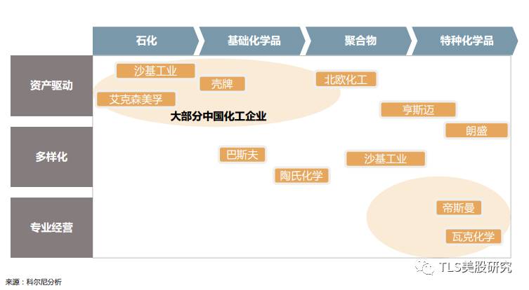 在化工行业的三个细分领域中,基础化学品由国企主导,将继续艰难去产能。但是,精细化工(DELT所在的行业,产品更为复杂)和特种化工(产品按照最终使用行业用途分类,例如油气开采等)将会受益于经济转型,从而长期受益。如下图所示,DELT所在的精细化工领域被标记成聚合物,业务策略主要是在于多样化和专业经营,而非国企粗放型的产能取胜。