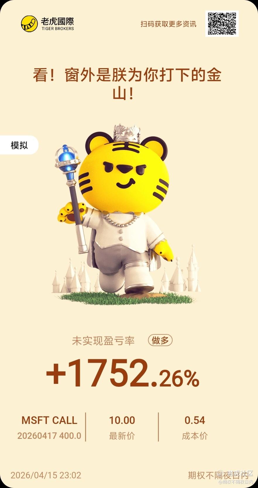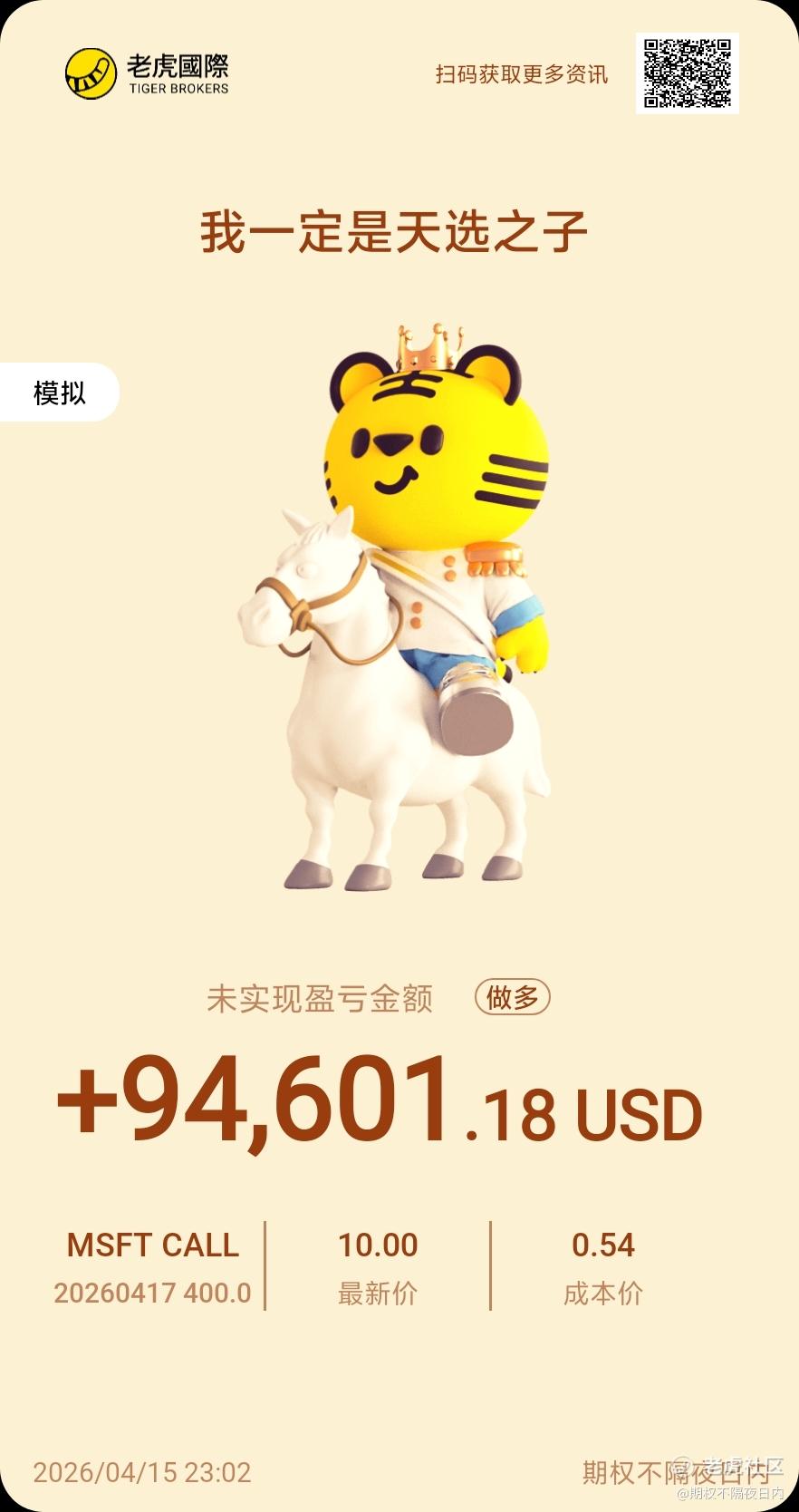 $MSFT 20260417 400.0 CALL$ 真的很离谱,5400美金模拟,美股真牛。