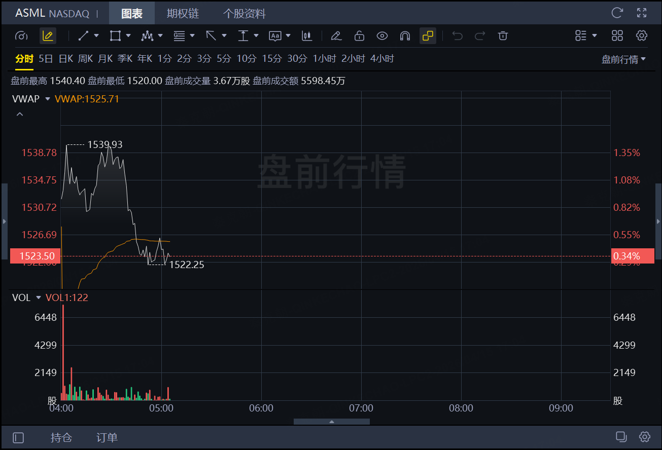 回过味来的投资者开始抄底,阿斯麦盘前股价转涨,但涨幅较小:
