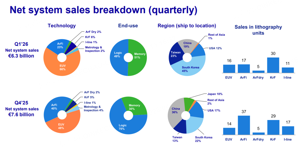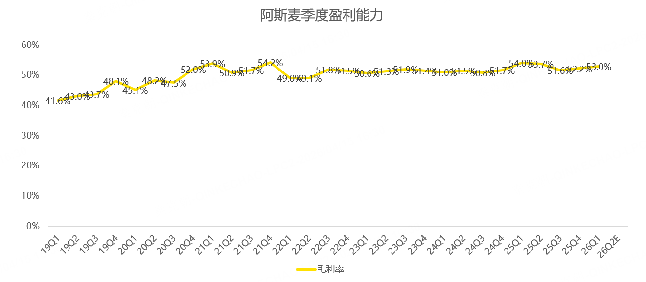 盈利方面,阿斯麦一季度毛利率为53%,位于管理层给出的51%-53%指引上限: