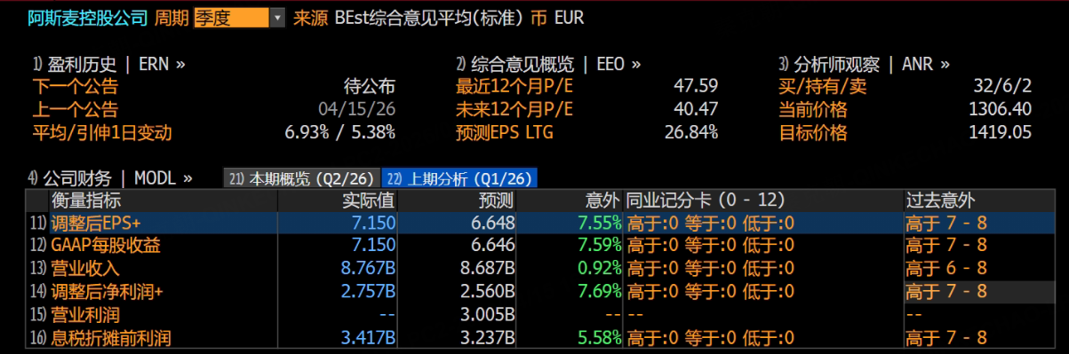 4月15日下午,光刻机巨头 $阿斯麦(ASML)$ 公布了一季报,营收和利润都超预期了: