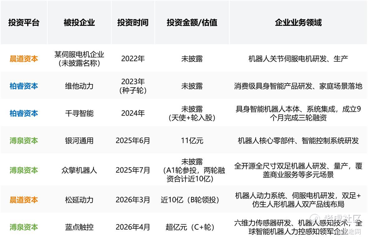 投资平台三:柏睿资本,由宁德时代联合创始人、副董事长李平出资创办,是宁王生态投资体系的重要组成部分。该平台聚焦具身智能早期核心技术布局,擅长挖掘种子期、初创期优质企业,与溥泉资本、晨道资本形成互补,进一步扩大宁德时代在机器人赛道的投资覆盖面。
