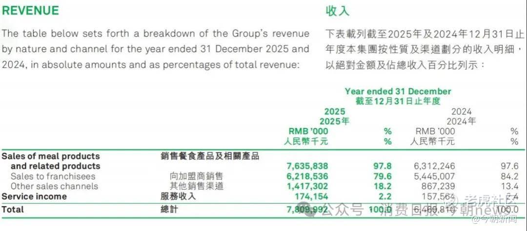 从卖食材向提供家庭餐食解决方案的转变,反映在收入结构中,2025年向加盟商销售产品的收入为62.19亿元,占比79.6%,较2024年的84.2%有所下降;而其他销售渠道(包括企业客户、直销等)收入占比则从13.4%提升至18.2%。社交电商渠道表现尤为突出,门店通过抖音渠道实现的GMV达到14.9亿元,同比增长75.3%。