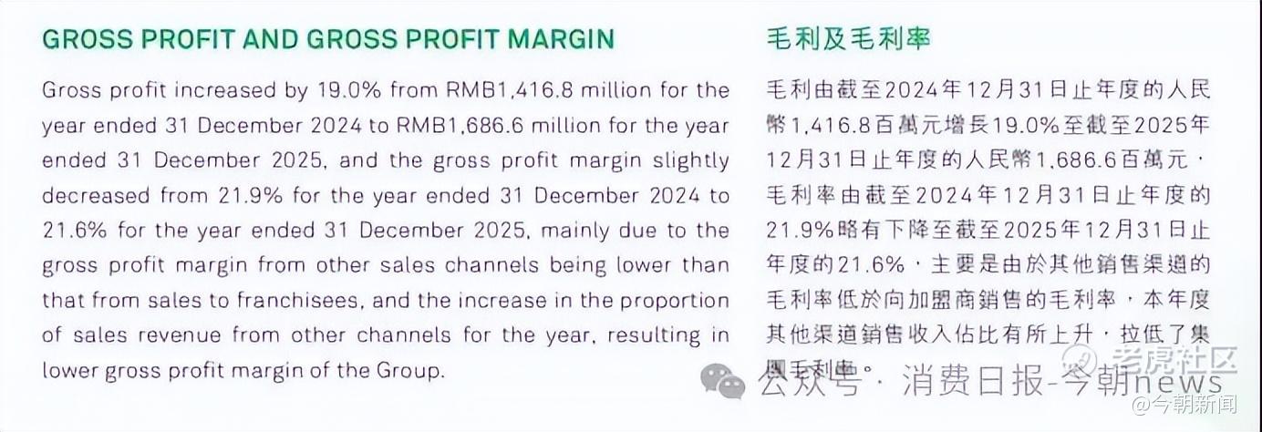 从一系列财务数字中可以看到,毛利下滑一方面在于其加盟渠道收入占比从84.2%降至79.6%,而加盟渠道是毛利最高的核心渠道,渠道结构失衡直接削弱了盈利水平。