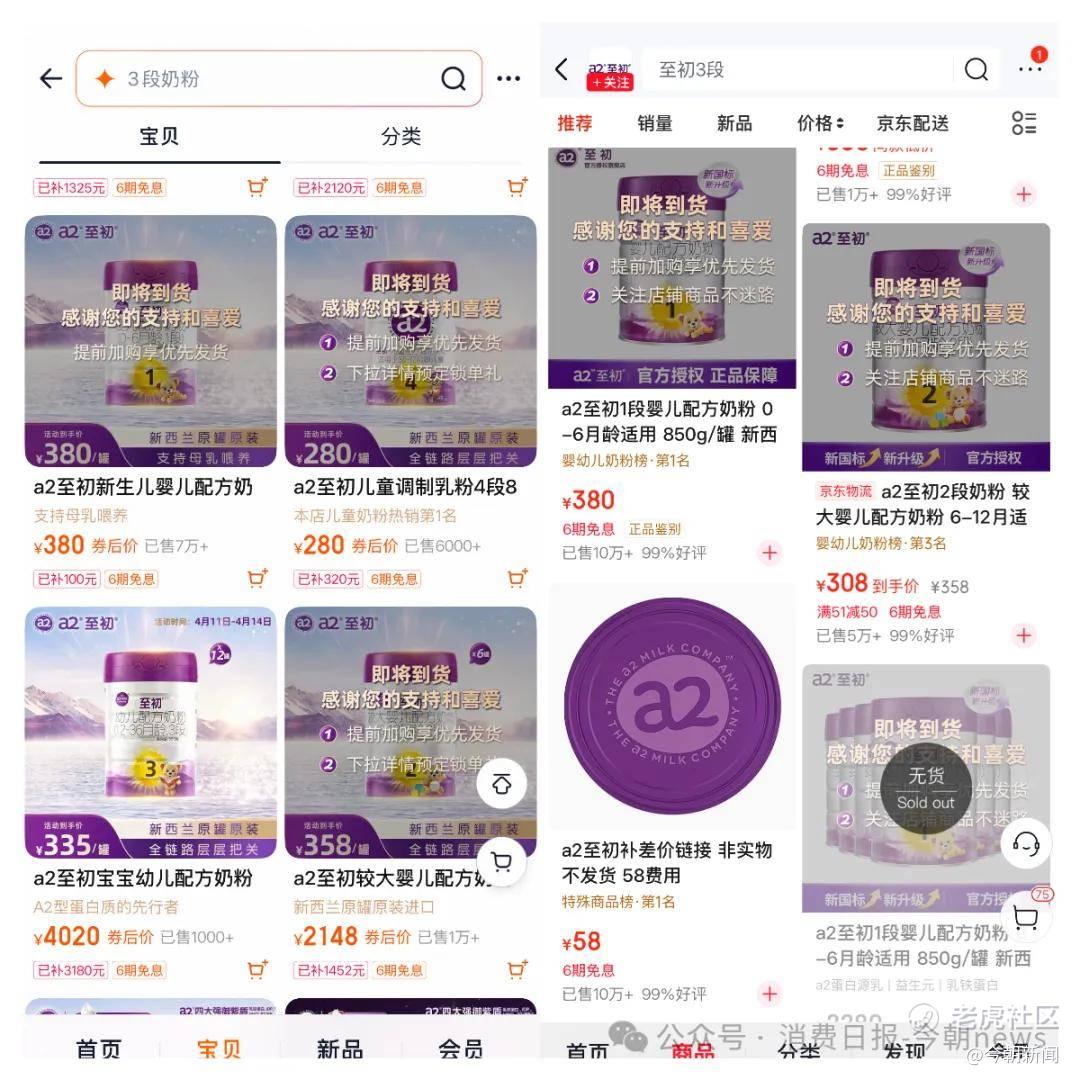记者查询发现,淘宝a2母婴官方旗舰店中,a2至初1段、2段均处于缺货状态,客服确认1段暂无库存,但2段近两天10点会开启单罐预售。a2海外旗舰店中,英文标签a2 Platinum紫白金全段货源充足,但2025年初推出的高端新品a2紫曜™1段、2段同样出现缺货。
