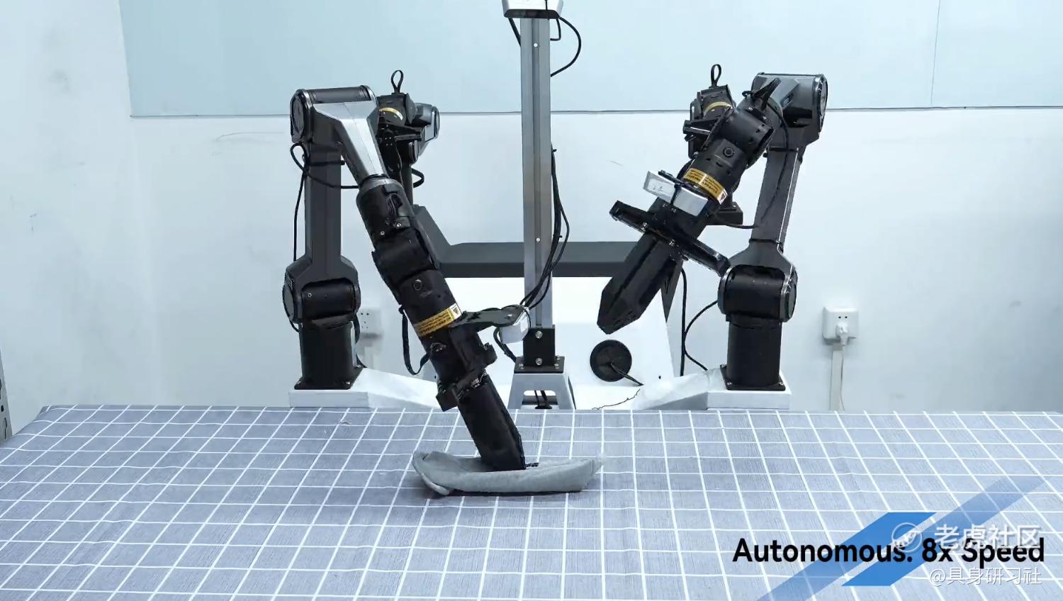 更有代表性的碾压在银级任务翻袜子上,这是家庭场景中最常见的任务,也是考验泛化能力的标杆任务。毕竟袜子是一个柔性物体,且在操作中会发生毫无规则的复杂形变,属于柔性物体操作、样本泛化、效率敏感的典型场景。这便要求机器人实时跟踪形变,精准区分袜子的内外侧、开口位置,对视觉感知、柔性物体跟踪能力要求极高。