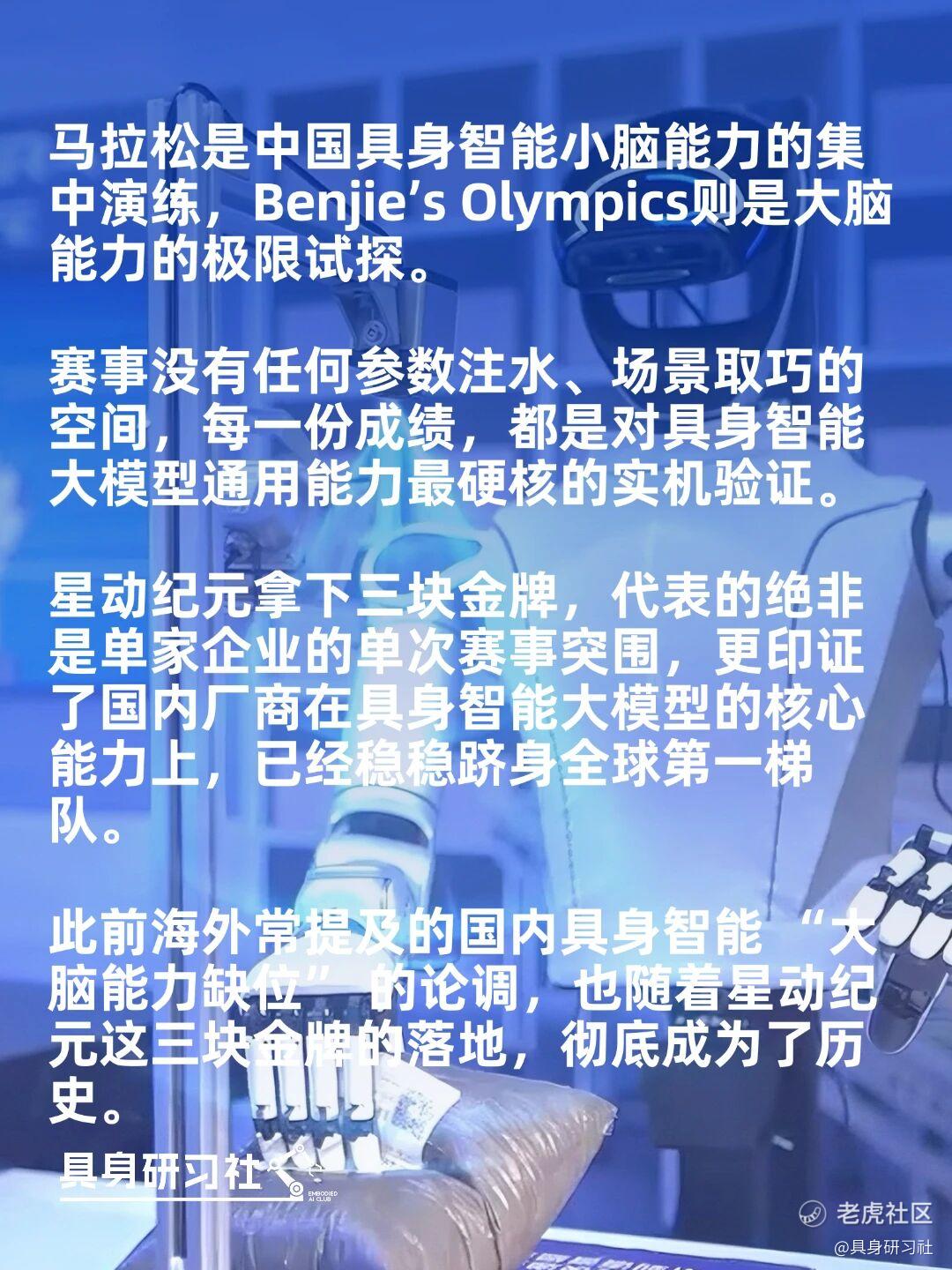 此前海外常提及的国内具身智能 “大脑能力缺位” 的论调,也随着星动纪元这三块金牌的落地,彻底成为了历史。