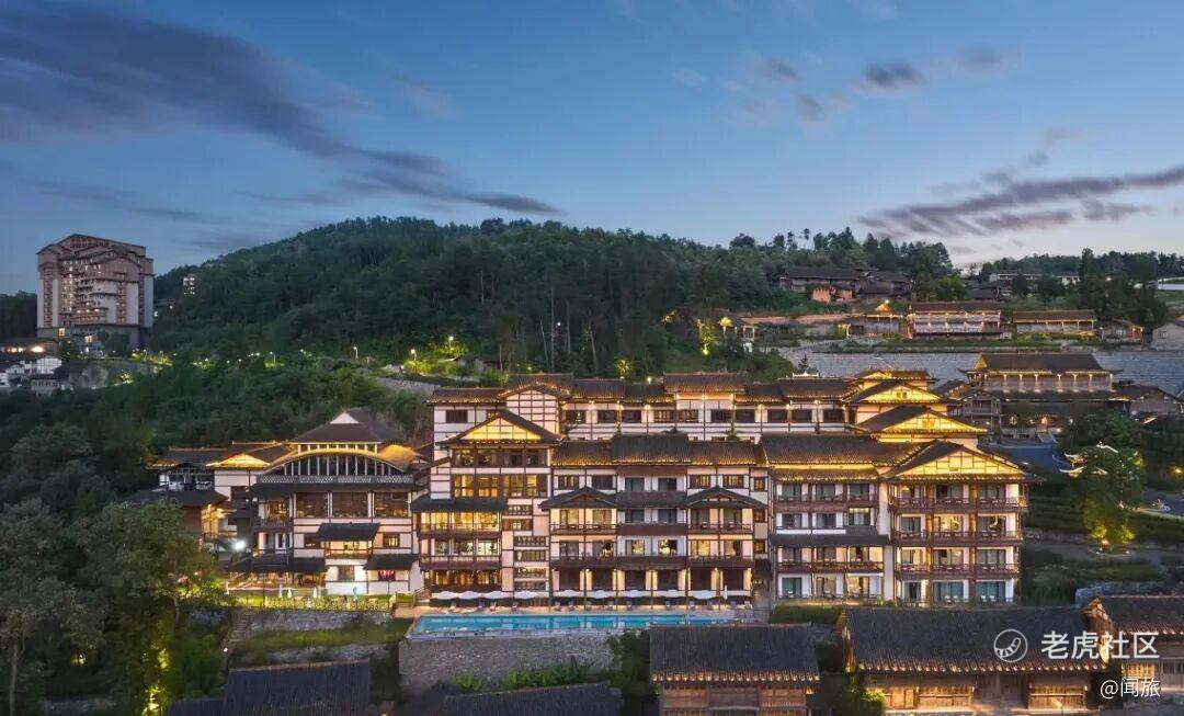 贵州遵义乌江寨的苗王酒店就是个很好的例子。这家酒店在景区制高点上,多间客房带落地窗和观景阳台。推窗是峡谷晨雾,低头是乌江蜿蜒。