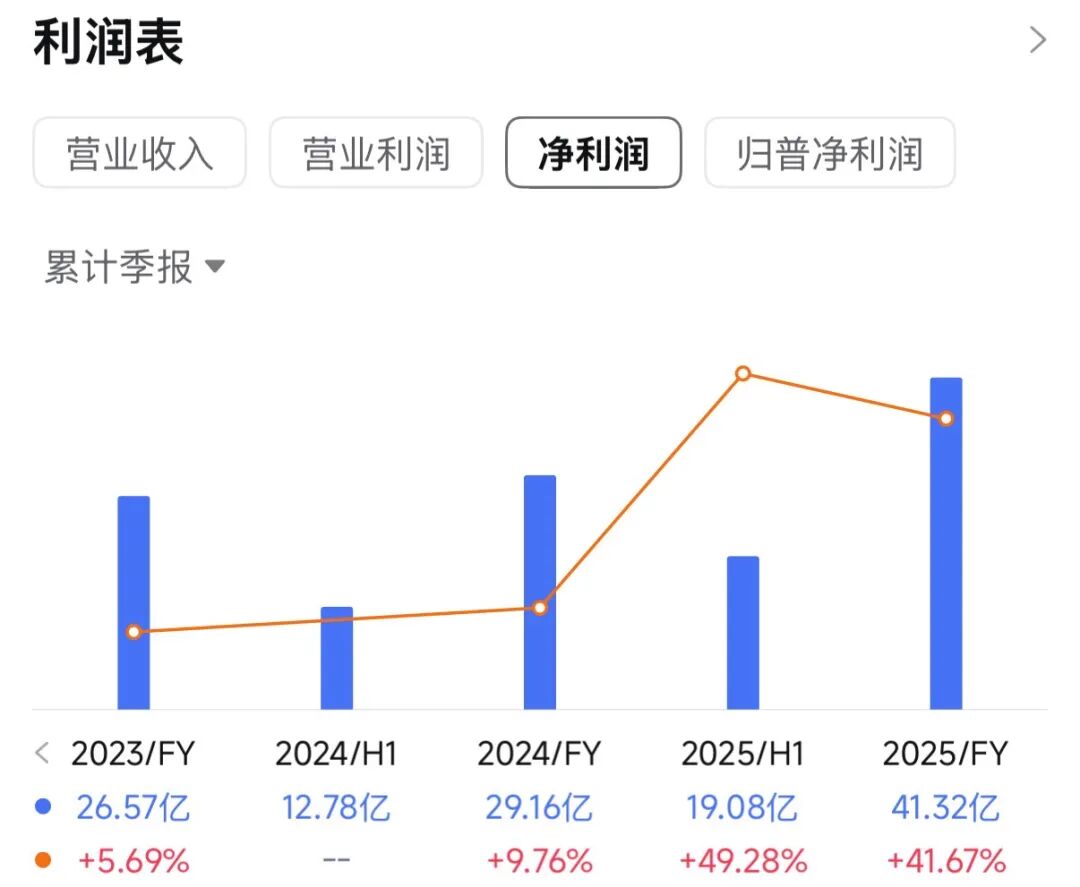 净利分别约为人民币26.57亿、29.16亿、41.32亿,2025年同比+41.67%;