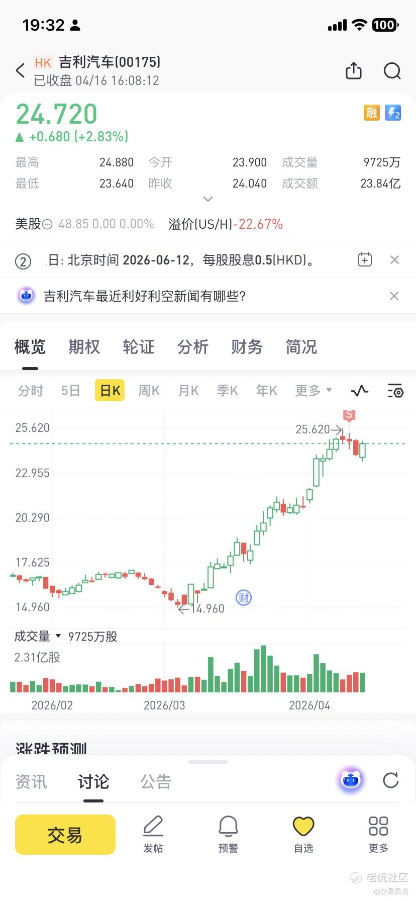 {"i18n":{"language":"zh_CN"},"data":{"magic":2,"id":554207797794072,"tweetId":"554207797794072","gmtCreate":1776339209241,"gmtModify":1776339213065,"author":{"id":3548236649718288,"idStr":"3548236649718288","authorId":3548236649718288,"authorIdStr":"3548236649718288","name":"交易员说","avatar":"https://static.tigerbbs.com/56f49d560e88e510a0dece0a83fe1f08","vip":2,"userType":2,"introduction":"洞悉行业本质,分享交易精髓。","boolIsFan":false,"boolIsHead":false,"crmLevel":4,"crmLevelSwitch":0,"currentWearingBadge":{"badgeId":"35ec162348d5460f88c959321e554969-1","templateUuid":"35ec162348d5460f88c959321e554969","name":"精英交易员","description":"证券或期货账户累计交易次数达到30次","bigImgUrl":"https://static.tigerbbs.com/ab0f87127c854ce3191a752d57b46edc","smallImgUrl":"https://static.tigerbbs.com/c9835ce48b8c8743566d344ac7a7ba8c","grayImgUrl":"https://static.tigerbbs.com/76754b53ce7a90019f132c1d2fbc698f","redirectLinkEnabled":0,"hasAllocated":1,"isWearing":1,"stampPosition":0,"hasStamp":0,"allocationCount":1,"allocatedDate":"2022.01.30","exceedPercentage":"60.75%","individualDisplayEnabled":0},"individualDisplayBadges":[{"badgeId":"3f8f4b8c193b4343a88817ce07587dbd-1","templateUuid":"3f8f4b8c193b4343a88817ce07587dbd","name":"星级创作者","description":"累计发表精华帖>=3(或有料帖>=10),且30天内发表过至少一篇精华帖(或4篇有料帖)并参与过评论","bigImgUrl":"https://static.tigerbbs.com/1866dcf97a73be1c330f85862546aedc","smallImgUrl":"https://static.tigerbbs.com/4f5c5fa8e2c7683bb5a7fce8753ee456","redirectLinkEnabled":1,"redirectLink":"https://www.laohu8.com/activity/market/2023/star-contributors/","hasAllocated":1,"isWearing":0,"stampPosition":0,"hasStamp":0,"allocationCount":1,"allocatedDate":"2026.04.22","individualDisplayEnabled":1,"backgroundColor":{"dark":"#675a37","tint":"#f9ebc2"},"fontColor":{"dark":"#ffffff","tint":"#ab7a0e"}}],"wearingBadges":[{"badgeId":"35ec162348d5460f88c959321e554969-1","name":"精英交易员","description":"证券或期货账户累计交易次数达到30次","smallImgUrl":"https://static.tigerbbs.com/c9835ce48b8c8743566d344ac7a7ba8c","bigImgUrl":"https://static.tigerbbs.com/ab0f87127c854ce3191a752d57b46edc","isScarce":0,"effectEnabled":0,"redirectLinkEnabled":0,"redirectLinkValidityFrom":0,"redirectLinkValidityTo":9223372036854776000}],"fanSize":65,"starInvestorFlag":false},"themes":[],"images":[{"img":"https://static.tigerbbs.com/6f6bd9c5f8d5689d2b193792c0b7e90d","width":"828","height":"1792"}],"coverImages":[{"img":"https://static.tigerbbs.com/6f6bd9c5f8d5689d2b193792c0b7e90d","width":"828","height":"1792"}],"title":"","html":"<html><head></head><body><a href=\"https://laohu8.com/S/00175\">$吉利汽车(00175)$ </a>不会卖在半山腰吧<span>[得意] </span> <img src=\"https://static.tigerbbs.com/6f6bd9c5f8d5689d2b193792c0b7e90d\" tg-width=\"828\" tg-height=\"1792\"></body></html>","htmlText":"<html><head></head><body><a href=\"https://laohu8.com/S/00175\">$吉利汽车(00175)$ </a>不会卖在半山腰吧<span>[得意] </span> <img src=\"https://static.tigerbbs.com/6f6bd9c5f8d5689d2b193792c0b7e90d\" tg-width=\"828\" tg-height=\"1792\"></body></html>","text":"$吉利汽车(00175)$ 不会卖在半山腰吧[得意]","highlighted":1,"essential":1,"paper":1,"likeSize":0,"commentSize":0,"repostSize":0,"favoriteSize":0,"link":"https://laohu8.com/post/554207797794072","repostId":0,"isVote":1,"tweetType":1,"viewCount":210,"commentLimit":10,"likeStatus":false,"favoriteStatus":false,"reportStatus":false,"symbols":["00175","GELYY"],"verified":2,"subType":0,"readableState":1,"langContent":"CN","currentLanguage":"CN","warmUpFlag":false,"orderFlag":false,"shareable":true,"causeOfNotShareable":"","featuresForAnalytics":[],"commentAndTweetFlag":false,"andRepostAutoSelectedFlag":false,"upFlag":false,"length":39,"optionInvolvedFlag":false,"xxTargetLangEnum":"ZH_CN"},"commentList":[],"hasMoreComment":false,"orderType":2}